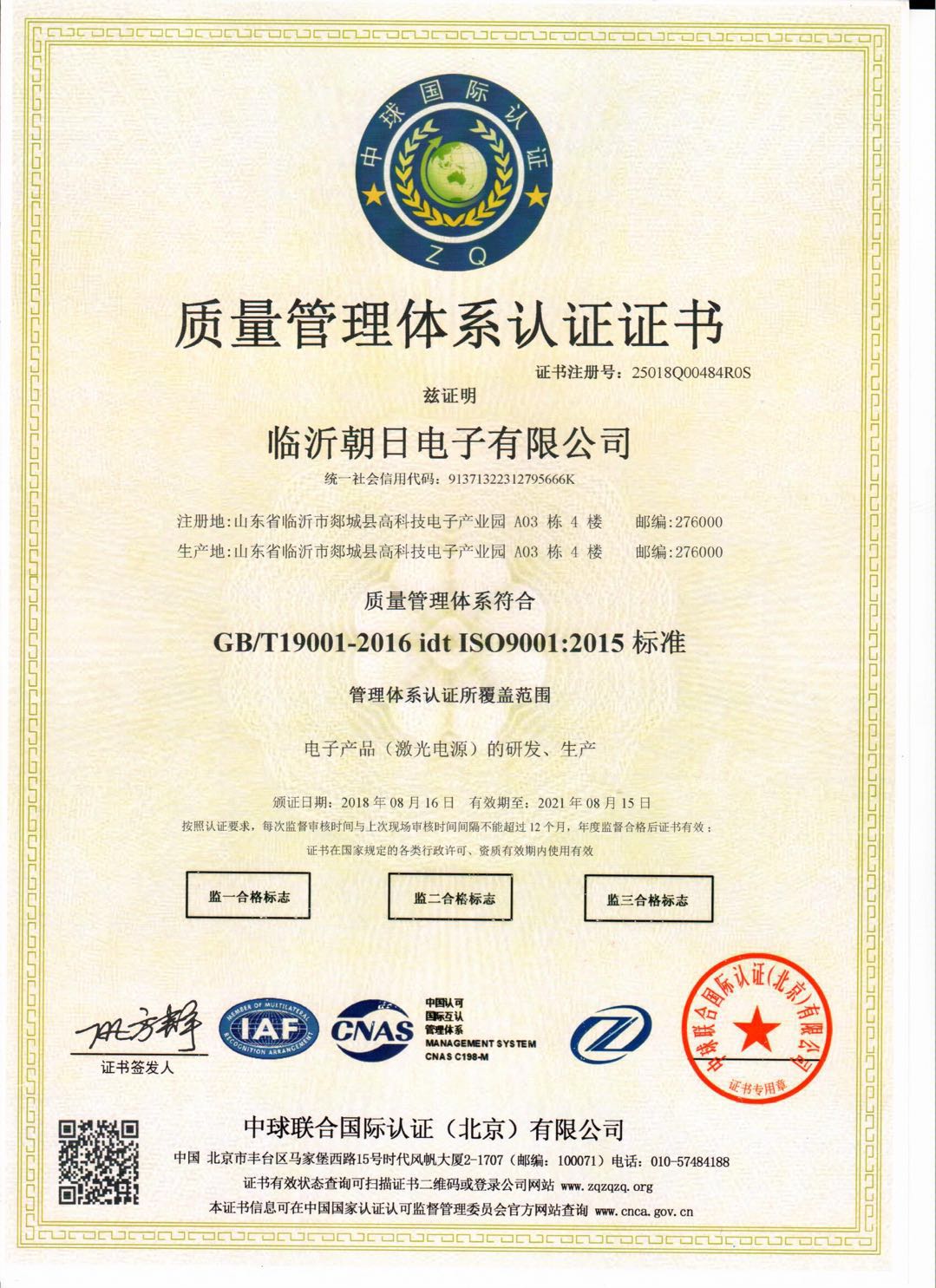 嚴格執(zhí)行ISO9001質量管理體系;